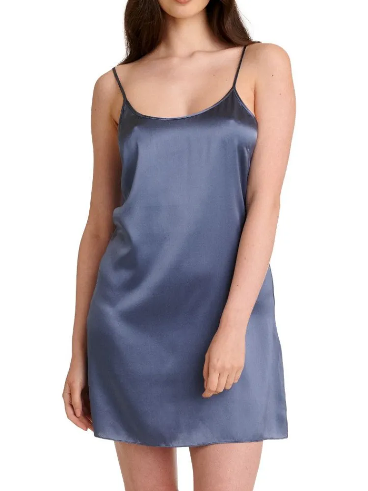 Das verführerische Unterkleid ist kurz geschnitten (Länge ca. 90 cm) und besteht aus hochwertig fein gewebtem Seidensatin. Das kurze Unterkleid eignet sich auch als edles Seidennachthemd. Ein seitlicher Schlitz sorgt für Tragekomfort und eine verführerische Silhouette. Es ist mit verstellbaren Spaghettiträgern ausgestattet und ist in den folgenden kombinationsstarken Farben erhältlich: