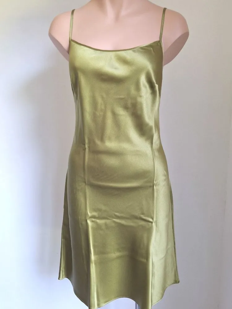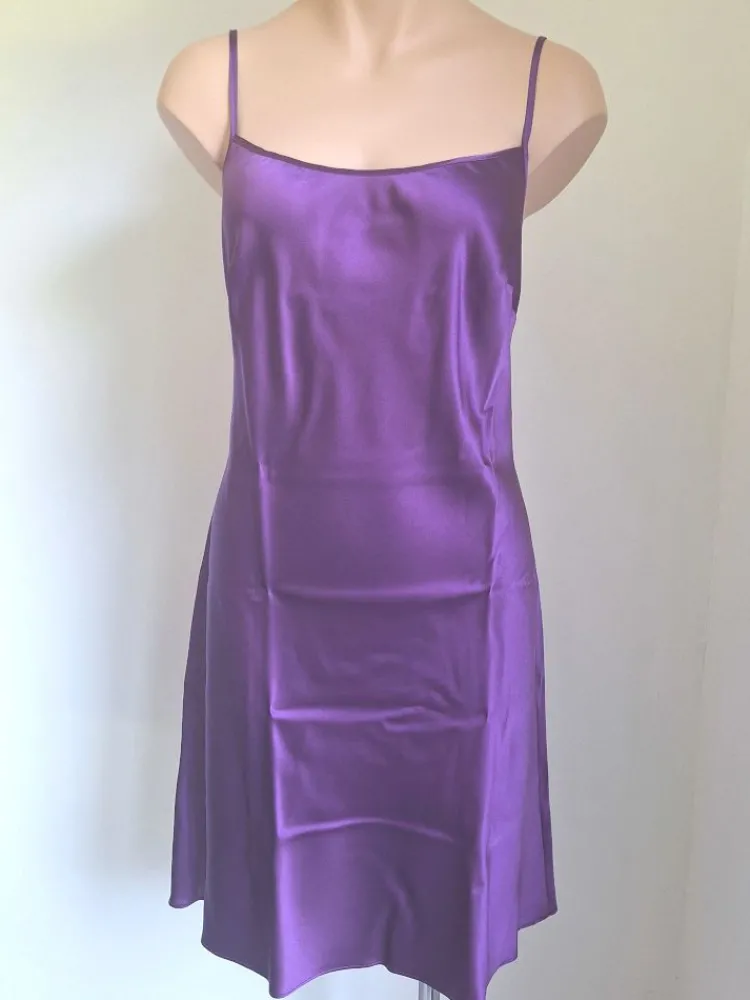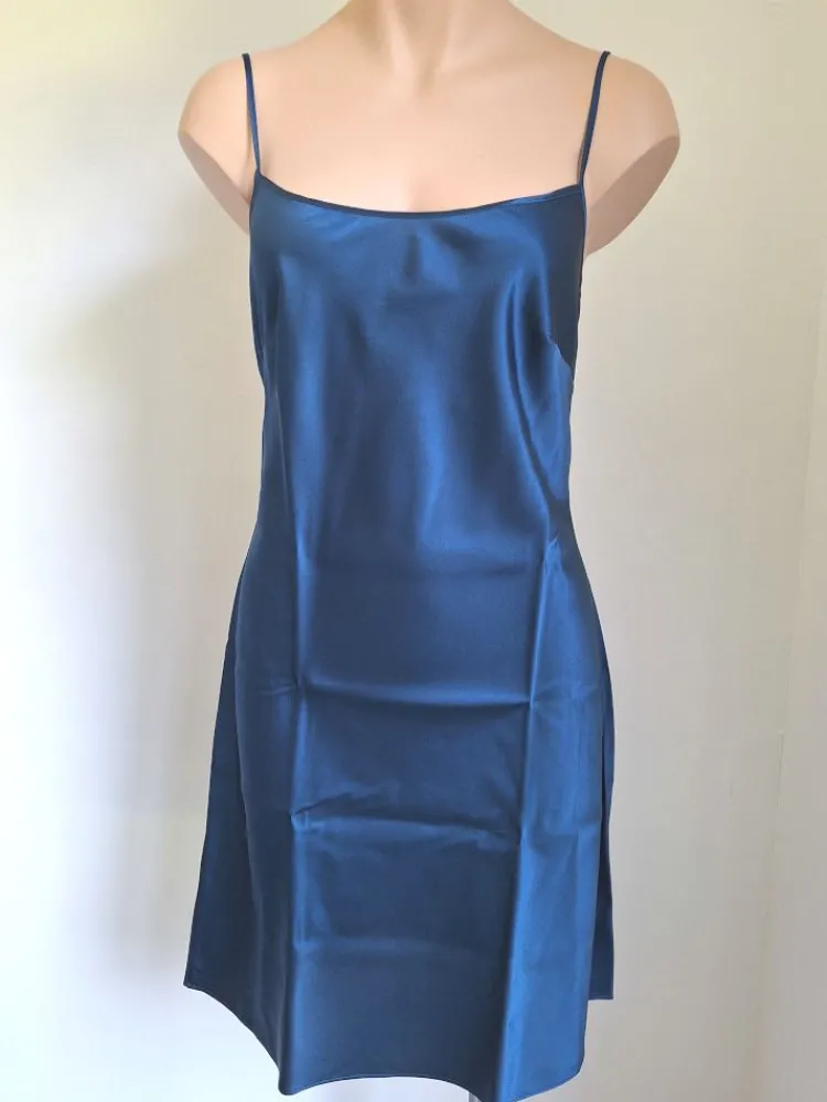 Dieses kurze Seidennachthemd ist ca. 90 cm lang. Es wird aktuell in den Größen 36 bis 46 angeboten (deutsche Damengrößen). Durch die hochwertige Verarbeitung und die flach gestalteten Nähte, kann es als Unterkleid aber auch als Seidennachthemd getragen werden.