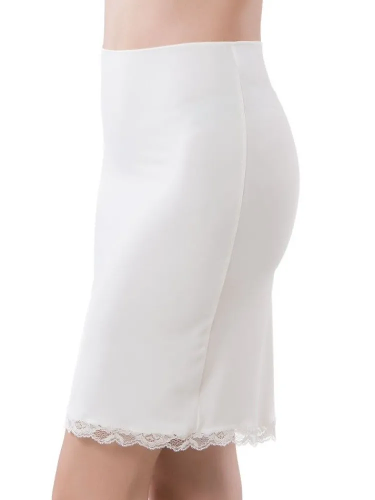 Der Halbrock aus der Basic Serie „Rubino“ des italienischen Wäscheherstellers ist am unteren Saum mit feiner weicher Spitze besetzt. Die Gesamtlänge beträgt ca. 48 cm.