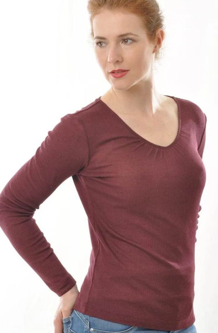 Wolle-Seide Langarm V-Shirt mit 55% Seidenanteil von Alkena