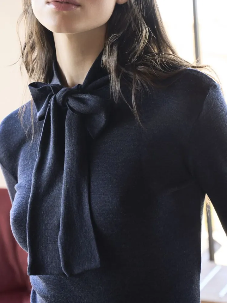 Wolle-Seide Shirt Briseide mit Schleife am Kragen von Boglietti
