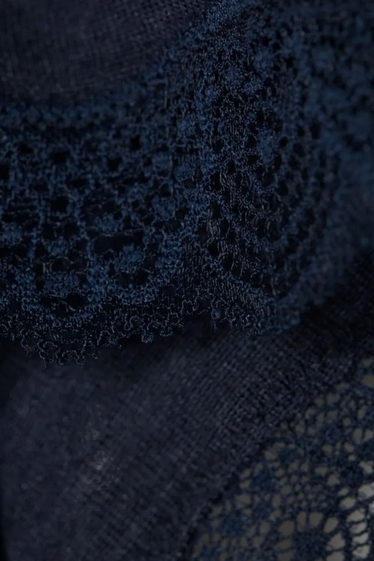 | Material Stoff | Jersey: 70% Wolle (Merino kbT), 30% Seide, Spitze: 90% Polyamid, 10% Elasthan |